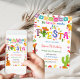 Birthday Invitation Card with Pink Background, Fiesta style, Cactus & Tacos.
