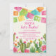 Mexican fiesta birthday party Invitation.A vibrant Watercolor Mexican Fiesta Birthday party invitation featuring colorful papel picado banners and blooming cactus. Perfect for a fun and festive birthday celebration.