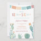 If the parents are keeping the baby's gender a secret until the birth, the fiesta will need to be a unisex affair. This He-Esta / She-Esta Baby Shower invitation design features muted tones of juniper, peach and cranberry, with watercolor cacti / prickly pear for a fun Mexican-themed event.