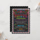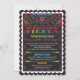 Mexican Fiesta Wedding Announcement Invitation with scalloped edge. Super cute and colourful for the couple who's wedding has a south of the boarder, Mexican feel, near a Mexican holiday, a post wedding or destination wedding. Inspired by lapel picado banners this invitation features decorative hearts and flowers and Aztec designs and banners in bright colours all on a black background. Hand drawn illustration my McBooboo.