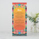 Mexican Fiesta wedding menu card with with decorative flowers and gold glitter (faux) accents on an Aztec rug background