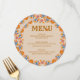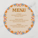 Mexican floral menu with fiesta folk art flowers in earthy colour palette of champagne beige brown blue pink orange and yellow. Distinctive design with western typography and elegant handwritten script. The template is set up for you to add your course titles and food items. Please browse my Mexican Floral collection for matching items or message me to create the templates you need.