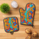 Mexican Folk Art Inspired Oven Mitt & Pot Holder Set