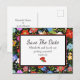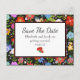 Bright and colourful Mexican Folk Art floral on a black background Save the Date card.