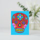 Mexican folk art sugar skull postcard. Background colour can be customised.