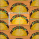 Fabric features an original marker illustration of a delicious Mexican taco on a n orange background.