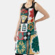 Ornament, geometric arrangement of elements, the composition of abstract flowers, red and green background, Mexican style, Vintage illustration