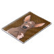 Mexican Hairless Dog Cartoon on chocolate paws background.