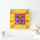 Mexican Huichol Golden & Purple Art Patterns Square Wall Clock
