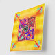 Mexican designer home living with indigenous art patterns. This design for the Mexican modern home, features a traditional purple, green and red Huichol yarn art piece. The washed out golden background gives to this eclectic home decor piece a boho look. Celebrate Mexican tribal art with this colourful Mexico home accent. Check out my Huichol ethnic home decor collection, for unique Mexican designer home accents inspired by indigenous art. This colourful Mexican art piece comes with turquoise dragonflies on each corner. And the front has peyote plants at the top and the bottom. Each colourfully decorated figure is a symbol with a cultural meaning. Huichol style patterns are much more than ethnic Mexican home decor, it is art. It is tribal art at its finest. Enjoy your love story with Mexico at home, with Mexican folk art decor.