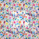 A pattern of colourful animals and flowers based on traditional Mexican Otomi fabric.
