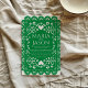 This Mexican Papel Picado Green White Folk Art Wedding Invitation design features a symmetrical, decorative green frame inspired by traditional papel picado or lace-cut patterns, often seen in festive or folk art settings. Intricate white cut-out motifs of hearts, flowers, and swirls embellish the border, creating an elegant and romantic feel. The scalloped edges are adorned with repeating petal-like and dotted shapes, making the design perfect for invitations, greeting cards, or festive announcements with a handcrafted charm.