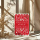 This Mexican Papel Picado Red Folk Art Boda Wedding Invitation design features a vibrant red background with delicate white cutout patterns reminiscent of traditional papel picado. The symmetrical composition includes large blooming flowers, leafy branches, heart motifs, and fan-like semicircles, evoking a festive and romantic atmosphere. The top and bottom are bordered with scalloped edges and floral fans, while the central section is left clear for customisable text, bordered with star-like dotted lines for added elegance.