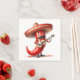 A whimsical cartoon chilli pepper character is depicted wearing a large sombrero and playing a guitar