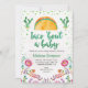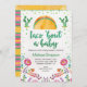 Looking for a colorful invitation to invite guests to a baby shower? This Mexican inspired watercolor design features a large taco, some cacti and Mexican style floral arrangements. I've added a taco 'bout a baby heading in a faux watercolor texture and some watercolor dots around the edges of the design. The back of the invitation is a very bright yellow, red and green striped pattern in a watercolor wash. This taco 'bout a baby baby shower invitation is ready to be personalized.