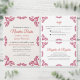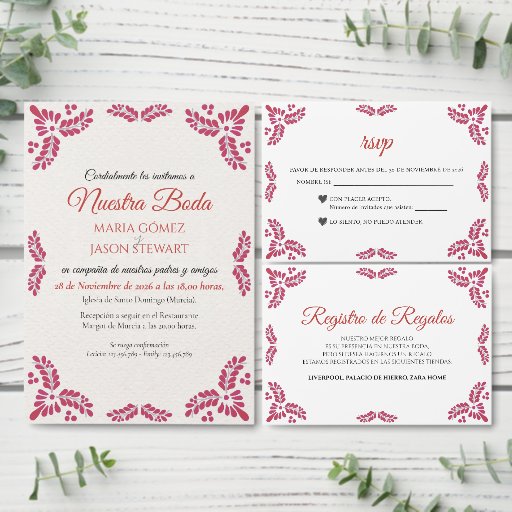This Mexican Talavera Red Floral Minimalist Wedding Enclosure Card design features a minimalist approach with delicate, symmetrical red floral motifs placed in each corner and along the edges. The small, leaf-like shapes create a sense of movement while maintaining an airy, open space in the center, allowing for ample text placement. The simplicity and elegance of the pattern evoke traditional Talavera tiles, giving the design a classic Mexican artisanal feel.
