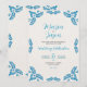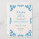 This Mexican Talavera Turquoise Floral Minimalist Wedding Invitation design features a minimalist approach with delicate, symmetrical turquoise floral motifs placed in each corner and along the edges. The small, leaf-like shapes create a sense of movement while maintaining an airy, open space in the center, allowing for ample text placement. The simplicity and elegance of the pattern evoke traditional Talavera tiles, giving the design a classic Mexican artisanal feel.