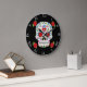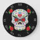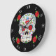 Mexican Tattoo Sugar Skull and Red Roses Large Clock