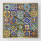 10.75” x 10.75” acrylic wall clock with an image of colourful Mexican tiles with an assortment of patterns and a shiny gold clock face. Tip: To accentuate the beauty of this clock, paint the hands gold. See the entire Mexico Clock collection in the HOME section.