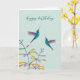 Birthday card featuring hand-painted watercolor Mexican Violetear hummingbirds and flowers. The inside is left empty for your own handwritten message.