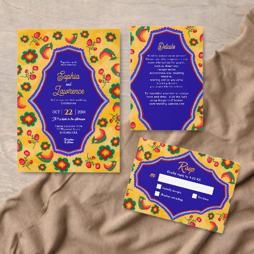 Announce your special day with festive charm using this Mexican Yellow Floral Save the Date Card. Adorned with vibrant red, yellow, and green hand-painted flowers inspired by traditional Mexican folk art, this design bursts with joyful energy and cultural flair. Set against a warm yellow background, the lively florals frame elegant typography, creating a bold yet refined look. Perfect for a fiesta inspired wedding, this save the date card sets a joyful tone and ensures your guests won’t want to miss the celebration.