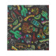 Joyful and Colourful Line Art Mexico Fiesta Pattern, composed by Typical Elements like sugar skulls, maracas, inca warrior, aztec warrior, chilli pepper, cactus, pyramid, lime, tequila, sombrero, tacos, a chameleon, and some floral ethnic and decorative elements. Original Vector Art Copyright BluedarkArt.