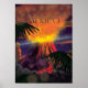 Mexico Volcano Vintage Travel Poster. Erupting Volcano From Mexico. Vintage or Classic Volcano illustration.