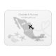 Stylish destination wedding save the date magnet card for couples getting married in Mexico With starfish and seashells plus a silver grey silhouette map and white love hearts. Very pretty and easy to customise with your personal details.