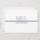 An invitation for a MFA graduation party. This minimalist invitation is blue and white. All the words and both colours can be customised.