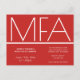 This is an MFA graduation party invitation postcard. This minimalist invitation is red and white. All the words and both colours can be customised.