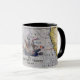 A variety of coffee mug styles, all adorned with a portion of the map that's become the MHP logo, Ortelius' 1589 'Maris Pacifici.' The central focus is a coloured illustration of Magellan's ship 'Victoria.'
