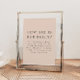 This baby shower how big is her belly game sign features a creamy beige and grey colour colour combination paired with a modern minimalist layout and simple boho vibe. It's the perfect sign for your bohemian desert or rustic earth tone baby event.