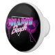 Retro style "Miami Beach" text design illustration with flamingos and triangle decoration in vibrant blue, white and pink colours on halftone background