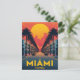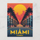 Step back in time with this vibrant, vintage-style travel postcard featuring Miami Beach, Florida. The design captures the essence of the Art Deco Historic District with its stylized row of buildings, classic palm tree silhouettes, and a dramatic, colorful sun setting over the street. This retro travel poster is perfect for celebrating your South Florida vacation, adding a touch of tropical deco to your space, or sending sunny greetings. Ideal for Art Deco lovers, beach enthusiasts, and anyone who enjoys bold, 1980s-inspired synthwave or retro designs.