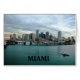 Landscape photograph of the Miami Florida skyline as viewed from the water. A ship is in the foreground. In the background is the city skyline and bridge against a cloudy sky and setting sun. Excellent Miami, Florida gift idea for those who love Miami, Florida, skylines, the beach, oceans, or travel. Also beautiful Miami, Florida souvenir or gift for someone headed to Florida on vacation.