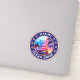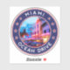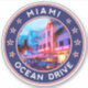Miami Ocean Drive sticker with American flag colours and photo of Ocean Drive, rounded shape.