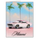 Miami Pink Sunset travel poster featuring a retro american muscle car against an evening sunset.