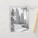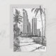 This travel postcard, in hand drawn sketch-style, showcases a view of Miami's skylines.