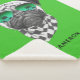 This design features a portrait of pug in with sunglasses and a black and white chequered scarf.