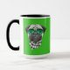This design features a portrait of pug in with sunglasses and a black and white chequered scarf.
