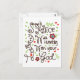 Micah 6:8 says "He has shown you, O mortal, what is good. And what does the Lord require of you? To act justly and to love mercy and to walk humbly with your God." This postcard is based on this scripture. Leaves, flowers and hearts accent around the text. The text is handwritten to create a whimsical fun style.