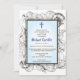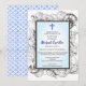 A collection of seashells surround a simple double frame in this baptism invitation. A blue cross accents the top. The back has a sea pattern to complete the theme.