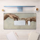 The Creation of Adam by Michelangelo Masterpiece Painting - The Creation of Adam is one of the most famous paintings in the world, created by master artist Michelangelo in Rome. The Creation of Adam is a classic fresco that Michelangelo painted in Rome's Vatican, on the Sistine Chapel, in 1511–1512. The Creation of Adam print on our gift is a portion of the fresco painting, showing the entire creation of Man in the Biblical Book of Genesis, where God (on the right) gives life to the first man, Adam (on the left). The painting shows the almost-touch of the hands, between God and Adam. The image is an iconic Renaissance painting. Michelangelo shows God as an old white-haired and white-bearded man, wearing a long white garment. Both God and Adam have their arms outstretched to each other, as if God is generating a spark of life into the new man Adam. The Michelangeo painting shows Man's likeness to God, showing God created humans in his own image.