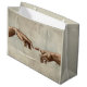 The Creation of Adam by Michelangelo Masterpiece Painting - The Creation of Adam is one of the most famous paintings in the world, created by master artist Michelangelo in Rome. The Creation of Adam is a classic fresco that Michelangelo painted in Rome's Vatican, on the Sistine Chapel, in 1511–1512. The Creation of Adam print on our gift is a portion of the fresco painting, showing the entire creation of Man in the Biblical Book of Genesis, where God (on the right) gives life to the first man, Adam (on the left). The painting shows the almost-touch of the hands, between God and Adam. The image is an iconic Renaissance painting. Michelangelo shows God as an old white-haired and white-bearded man, wearing a long white garment. Both God and Adam have their arms outstretched to each other, as if God is generating a spark of life into the new man Adam. The Michelangeo painting shows Man's likeness to God, showing God created humans in his own image.