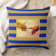Michelangelo hands vintage art on golden and royal blue striped Throw Pillow. Michelangelo hands art image is only on the front side.
