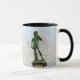 White and black 11 oz. combo mug with an image, on both sides, of a bronze replica of Michelangelo's David located at Piazzale Michelangelo in Florence, Italy.