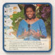 Michelle Obama stands at a podium, giving a speech with vintage science textbook images and floral arrangements collaged behind her. A quote about biodiversity in nature (not hers, but still relevant), fills the bottom third of this blue-outlined coaster.