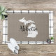 Modern farmhouse personalised doormat with your family name inside your state map. Faux burlap canvas texture background. Click Customise It to add your own text and images and create a unique one of a kind design!