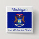 An authentic high quality image of the flag of Michigan set between the state name and nickname over a light flag-colour background.