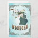Aqua Michigan map with lovely birds on tree branches